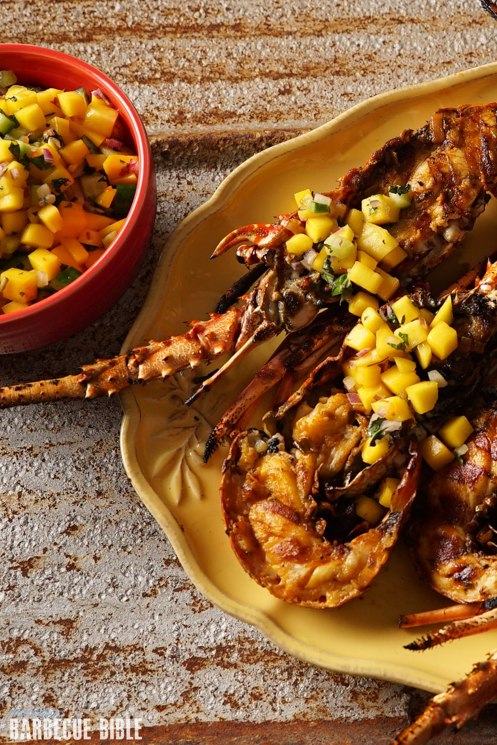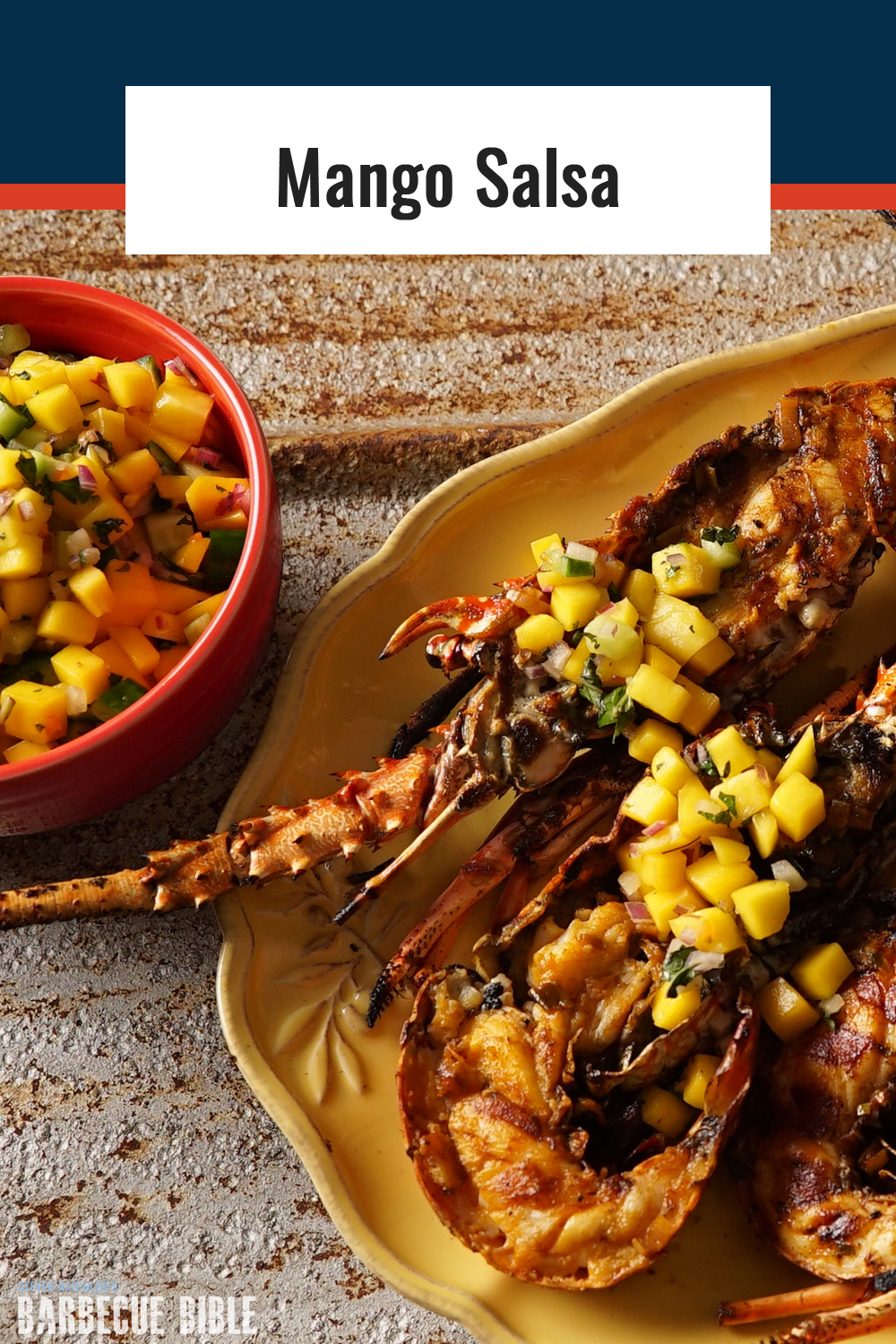 A simple and colorful salsa. It’s sweet and crunchy, with a nice ginger-habañero bite. Serve this fiery Mango Salsa with Grilled Florida Lobster, Rum Butter Basted.