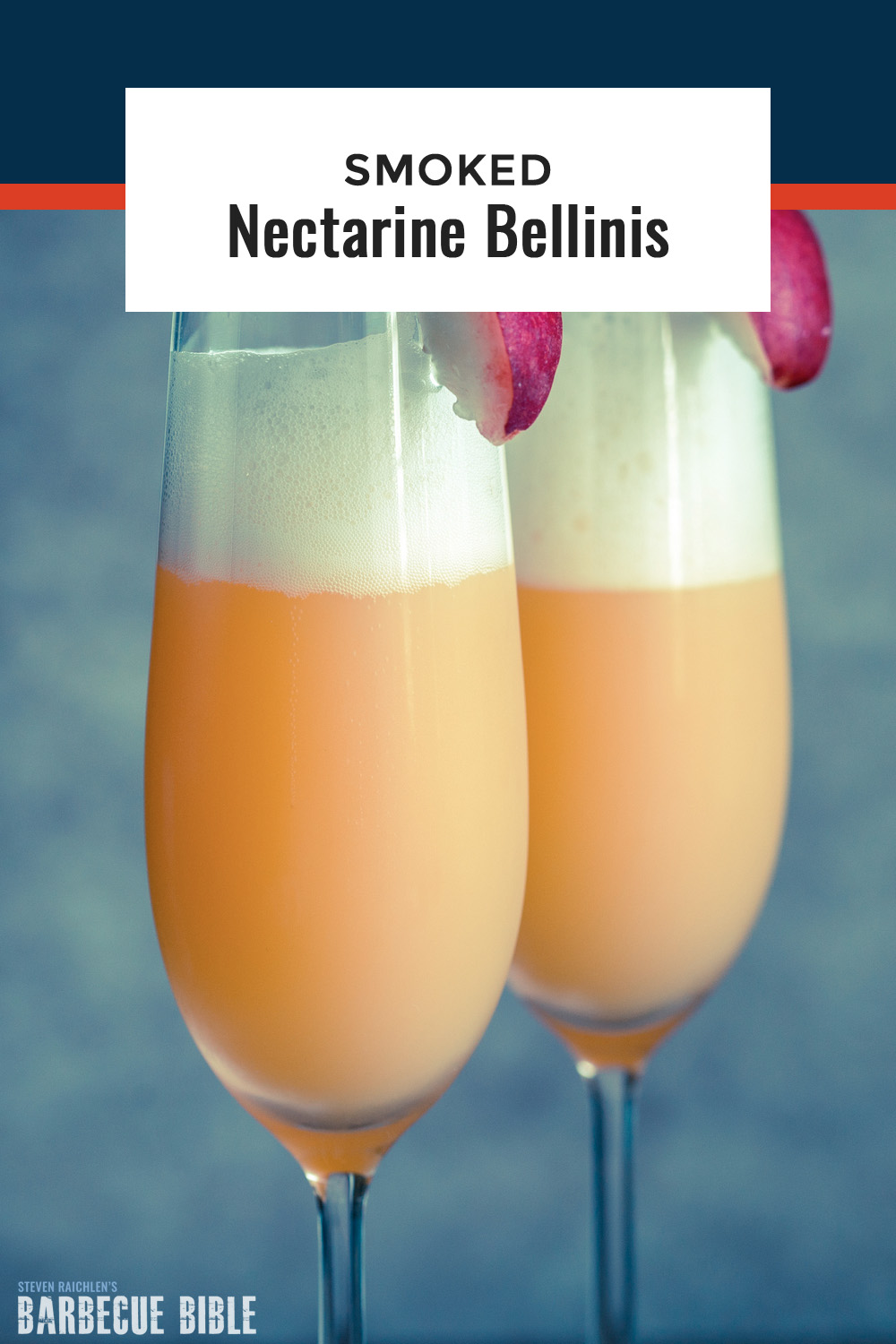 Step 3: Transfer the nectarine halves to a plate to cool. Puree 3 halves in a food processor or blender. Cut the remaining half into thin wedges for garnishing the Bellini. Impale on cinnamon sticks, if desired.